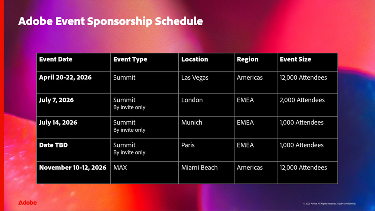 Maximize your impact - and your budget - by sponsoring multiple Adobe events.